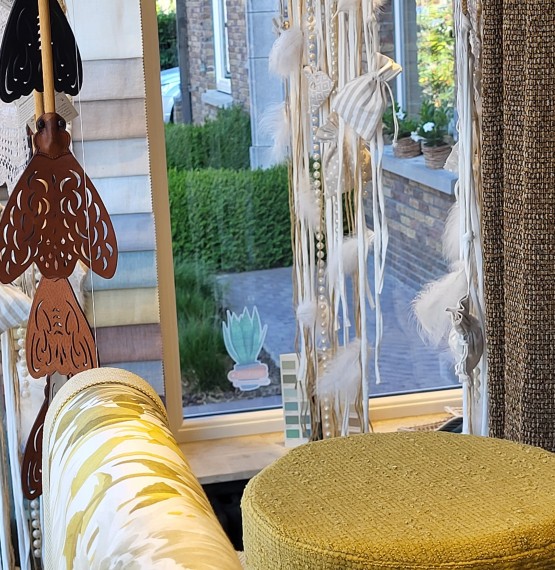 Anderzijds is de inleefruimte ingericht met kleinmeubelen en woonaccessoires die zowel via directe verkoop als op bestelling kunnen verkregen worden. Een aanbod van geschenkartikelen volgens het (kleur)thema in de inleefruimte vullen onze woonboetiek aan..